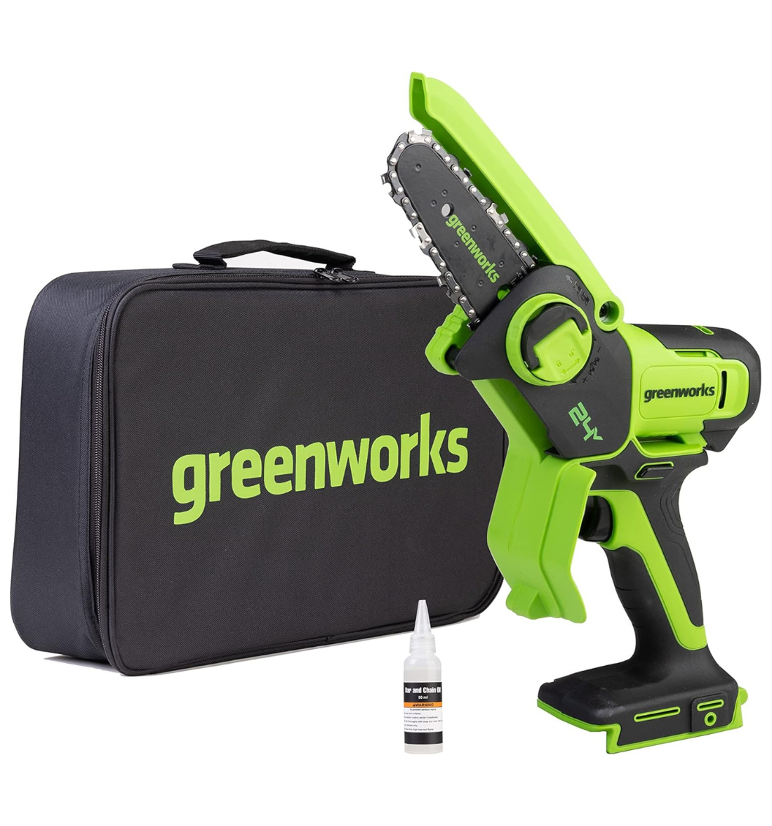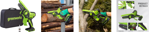 Mango de goma hace que sea más cómodo sostener y controlar la motosierra. El tamaño reducido también permite que la motosierra de batería se ajuste a espacios estrechos o incómodos donde las sierras más grandes. El paquete de la mini motosierra incluye 1 X Mini Motosierra, 1 X Botella de Aceite, 1 X Manual de Usuario y 1 X Bolsa de Nylon.