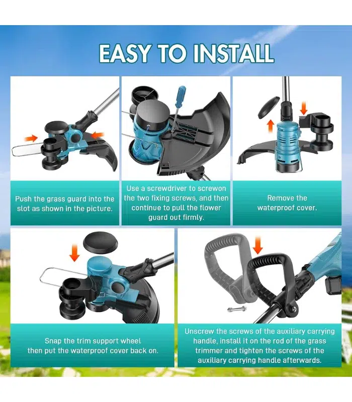 Revolución inalámbrica en jardinería con la Desbrozadora PONOSEU Cortabordes Eléctrico Plegable, que combina diseño retráctil compacto con motor eléctrico de alto rendimiento para máxima versatilidad y comodidad. Su sistema plegable único permite fácil transporte y almacenamiento, mientras que las ruedas desmontables transforman el trabajo en una tarea sencilla como caminar. Incluye múltiples cuchillas intercambiables, mango telescópico ajustable y compatibilidad con baterías estándar. Con interruptor de seguridad dual y protector metálico frontal, garantiza operación segura en cualquier terreno. ¡Tecnología 3 en 1 para jardinería eficiente sin límites! Ideal para usuarios domésticos y mantenimiento profesional de jardines.